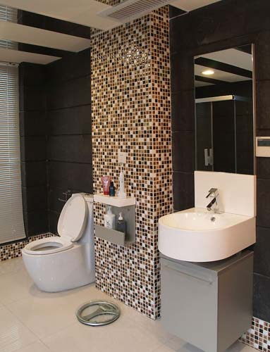 享受另類親密關(guān)系的夫妻,通常是比較理性的,因此黑色是適合的衛(wèi)浴間主色調(diào)。衛(wèi)浴間不需要過多的裝飾,可以適當(dāng)采用懸掛軟簾或者樹屏風(fēng)的隔斷方法,保持相互之間的隱秘感。燈光除去主照明部分, 還需要考慮每個(gè)區(qū)域的照明是否舒適實(shí)用。特別是浴室鏡上方的燈,應(yīng)安裝可調(diào)光式的。