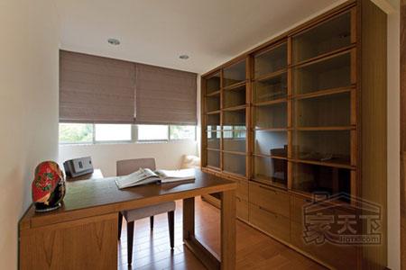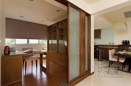 書房系統(tǒng)書柜門片搭配拉門材質(zhì),展現(xiàn)自然休閑感