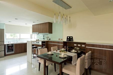 開放式廚房與餐廳,增加室內(nèi)采光及空間感