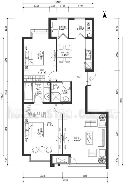 2、兩個衛(wèi)生間均為暗衛(wèi),不宜于濁氣排放.