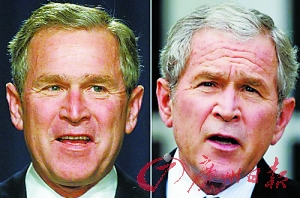 愁白頭的例子,在每位美國總統(tǒng)的身上都發(fā)生過??肆诸D剛進入白宮時,還有一半的頭發(fā)是棕色的,但兩年之后他已經(jīng)變成“銀發(fā)老頭”;小布什剛入白宮時,頭發(fā)還是“鹽和胡椒”,好像一眨眼間全變成“鹽”了。當然,奧巴馬當總統(tǒng)以來,他的頭發(fā)顏色變化更快。