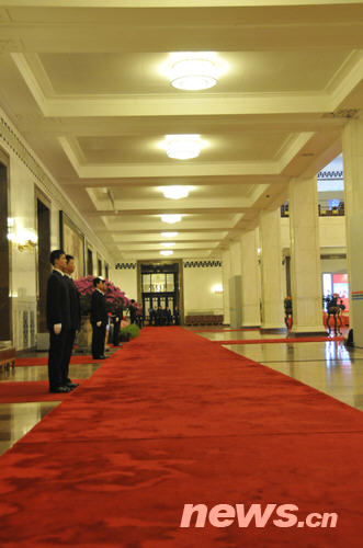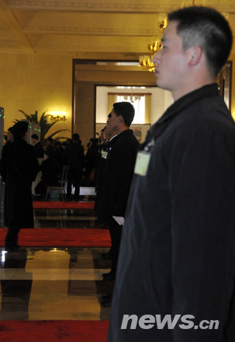 人民大會堂整齊劃一的服務(wù)人員(陳濤 攝)