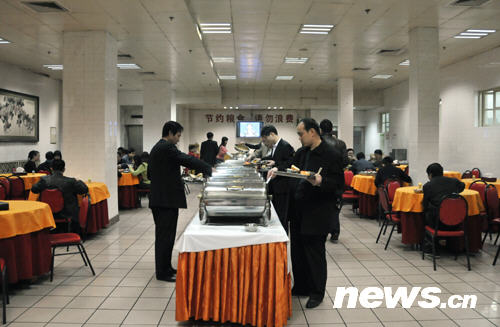 再來一張人民大會堂里供工作人員用餐的地方,“節(jié)約糧食,請勿浪費”非常醒目?。悵?攝)