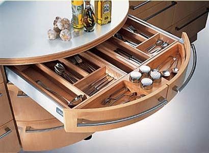 5、關(guān)于一般常用的炊具,長柄煮鍋可掛在柜架的掛鉤或放在淺抽屜里,而較重的鍋子最好放在腰部以下高度的柜架里。