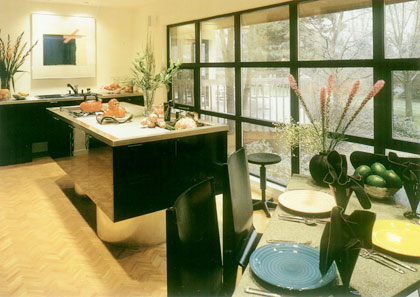 敞開式,理論上是將廚房與餐廳或客廳相連的一面非承重墻打掉,使廚房與餐廳合二為一。由于東方人的飲食習慣與西方人有較大區(qū)別,因此,設計師對敞開式廚房作了有中國特色的改造。如用一面玻璃磚墻加以分隔,既保證了油煙不外散,又可利用玻璃磚墻打造透光和折射光線的效果,使內(nèi)外都感覺到明亮和通透。