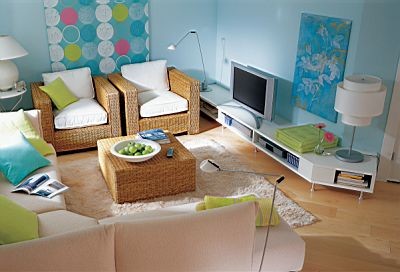 最能體現(xiàn)客廳清爽風(fēng)格的色彩當然是各種各樣的藍色,仿佛在蛋清里攪拌過的柔嫩的藍色,變幻無窮,都是對客廳色彩的絕好演繹,且在視覺上有增大空間的感覺。