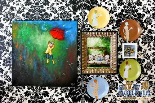 飾品——飾品很簡(jiǎn)單,多彩的搭配讓墻面變得生動(dòng)。女性的細(xì)膩與溫婉通過(guò)盤子上的四幅畫作呈現(xiàn)出來(lái)