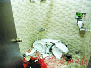 回憶起1周前發(fā)生的事,周先生仍然心有余悸:“2月24日晚上9時(shí),我上完學(xué)校的培訓(xùn)課后回到賓館,那天課程很緊,我很累,就想著盡快上廁所梳洗然后睡覺(jué)。我坐在馬桶 上如廁,完事后側(cè)身想用手取下衛(wèi)生紙,沒(méi)想到馬桶突然向左翻側(cè),我整個(gè)人也跟著倒下,馬桶跌到地上摔得粉碎,我正好**坐在了碎裂的瓷片上?!敝芟壬f(shuō):“當(dāng)時(shí)我就痛極并暈了過(guò)去?!睆闹芟壬?dāng)晚現(xiàn)場(chǎng)朋友所拍的廁所照片看,馬桶摔得稀巴爛,部分碎片上有鮮紅的血跡。