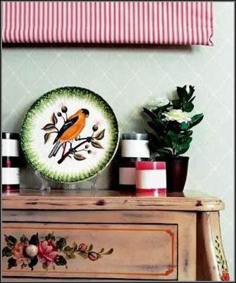 布置窗的時(shí)候,不僅要注意色彩和諧,也要講究風(fēng)格的統(tǒng)一。梳妝臺(tái)上的手繪玫瑰圖案跟粉色條紋棉布窗簾在色彩上形成和諧呼應(yīng),手繪瓷盤(pán)典雅而不失活潑,為點(diǎn)睛之筆,烘托出一派英式鄉(xiāng)村風(fēng)格,與室內(nèi)整體格調(diào)完美統(tǒng)一。餐廳的窗下,最適合布置成這樣隨意溫馨的小景。