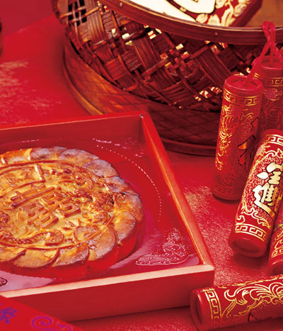 定親前議親,議親始議“小禮”,在買(mǎi)賣(mài)婚姻年代均討價(jià)還價(jià)。一般“四洋紅”或“六洋紅”(綢緞衣料四至六件),金戒子兩只、金耳環(huán)一副;聘禮,小禮三十六,中禮六十四,大禮一百廿(銀圓);食品,個(gè)數(shù)“六十四”,即包頭64對(duì)、油包64只、麻餅64只等,尚有老酒2擔(dān)至8擔(dān)不等,故生囡有“老酒甏”之稱(chēng)。定親后,男方將上述禮品用杠箱抬到女方。女方回禮多為金團(tuán)、油包及閨女自做的繡品。定親憑證,男方送“過(guò)書(shū)”,俗稱(chēng)“紅綠書(shū)紙”(紙張兩層外紅內(nèi)綠),女方送“回貼”認(rèn)可,俗稱(chēng)“文定”。故舊時(shí)夫妻吵嘴,妻子常說(shuō)我是有“紅綠書(shū)紙”的,以此抑制丈夫。繼“文定”后擇吉迎娶,由擇日店揀“好日”的日子。親友送禮,婚禮多是現(xiàn)金,或喜幛、喜軸,并書(shū)以“百年好合,五世其昌”、“天作之合”等。送嫁禮多為繡花或綢緞被面、被頭或日用器物,亦有送紅棗、花生、桂圓、蓮子,寓“早生貴子”意。
