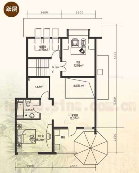 6、斜屋頂下空中小閣樓形成風(fēng)格化的LOFT,光影斜射入屋溫暖柔和,作為書房或個(gè)人工作室,明月相邀清風(fēng)伴讀,感性生活悠然寫意。