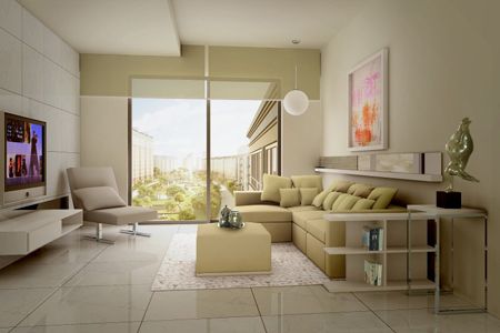 客廳若有梁橫跨,應(yīng)以裝潢遮掩