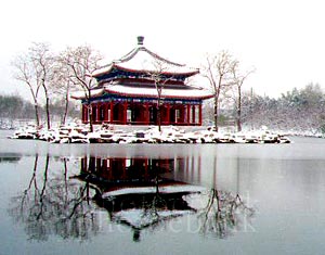 在西山稍為偏北之處就是玉泉山。萬壽山也被稱為甕山,聳立在海淀西邊大約5里(約2.5公里)的地方,其優(yōu)美的曲線猶如一個甕,并因而得名。這兩座山脈交錯就像男女結合般調和。這些都是風水堪輿學上所顯示的興隆象征。