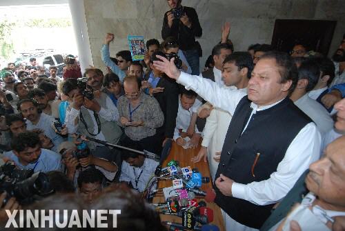 據(jù)巴基斯坦黎明新聞電視臺15日報道,巴**當(dāng)天決定對前總理、反對黨***聯(lián)盟(謝里夫派)領(lǐng)導(dǎo)人納瓦茲·謝里夫?qū)嵤槠?天的軟禁。但巴基斯坦內(nèi)政顧問馬利克隨即稱,**沒有簽發(fā)任何限制謝里夫兄弟行動自由的命令,只是指示對他們加強(qiáng)安全保衛(wèi),他們的行動是自由的。當(dāng)天下午謝里夫走出家門,對其支持者發(fā)表講話,并宣布將領(lǐng)導(dǎo)****活動。