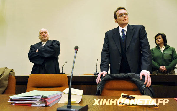 3月9日,瑞士男子黑爾格·斯加爾比(前)在德國(guó)慕尼黑的法庭等待開(kāi)庭受審。新華社/法新