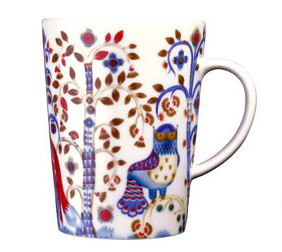 色彩鮮明,想象風(fēng)格強(qiáng)烈的圖案,取代了安靜的單色系。設(shè)計(jì)師讓3只美麗的奇幻生物,得以現(xiàn)身在這片魔幻森林中,讓大家看到傳統(tǒng)芬蘭民俗文化華麗豐富的另一面。在深青與純白底色上,加上有如節(jié)慶般繽紛的色彩,得以喚醒人們的想象力,提醒你每一天都是值得鼓舞慶祝的好日子。