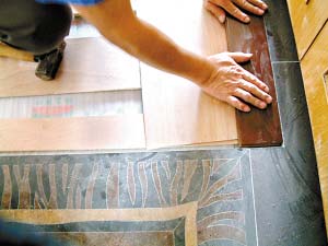 強化木地板是以高密度纖維板、中密度纖維板和刨花板為基材,用浸漬紙膠膜貼面層壓復合而成,其特點是表面花紋整齊、耐磨損、容易保養(yǎng),但彈性不如實木地板好、腳感較硬。
