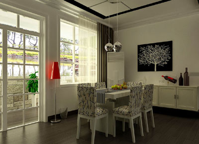 餐廳大部份與客廳、廚房是在同一視覺空間中,形成一開放式空間,故設(shè)計(jì)時(shí),除餐廳單獨(dú)考慮之外,也必需考慮其與其它空間的感覺是否協(xié)調(diào),而非只做單純考慮。一般可在餐廳與客廳中間,加上一組隔間柜,在餐廳與廚房中間,加上餐柜或碗盤柜,不但可加強(qiáng)使用功能,更可使餐廳成為一個(gè)獨(dú)立空間。