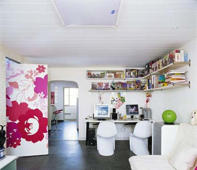 我們很難找尋出這套52平方米居室原來的樣子,這是身處在極其老舊住宅樓中的一套居室,男主人楊賽文將自己生活過往中的許多想法,揮灑進(jìn)了這個(gè)房子,將80后新生代的種種大膽嘗試,灌入這個(gè)原本死氣沉沉的空間。白色的大面積使用,在視覺效果上擴(kuò)大了空間的面積。線條簡單的白色家具,使整個(gè)客廳顯得整潔、利落線條混搭,色彩呼應(yīng)無論客廳、臥室,還是廚房。房中的每個(gè)角落,都在向我們昭示著生動(dòng)的線條混搭,以及鮮明的色彩呼應(yīng)。