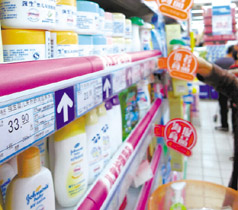 記者昨日在廣州包括華潤(rùn)萬(wàn)家、吉之島、樂(lè)購(gòu)等各大賣場(chǎng)內(nèi)看到,強(qiáng)生系列嬰兒衛(wèi)浴產(chǎn)品依然有售。然而個(gè)別超市服務(wù)人員主動(dòng)提醒顧客選擇強(qiáng)生以外的其他產(chǎn)品。