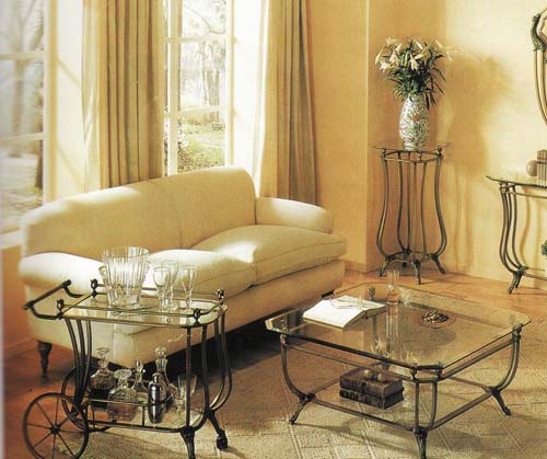 1.斑斕桌面鐵藝茶幾+布藝沙發(fā)=多彩鐵藝休閑