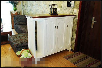 進(jìn)門處的鞋柜不僅可以收納鞋子,特別的穿透設(shè)計可以讓可愛的女兒和媽媽玩起捉迷藏的游戲。