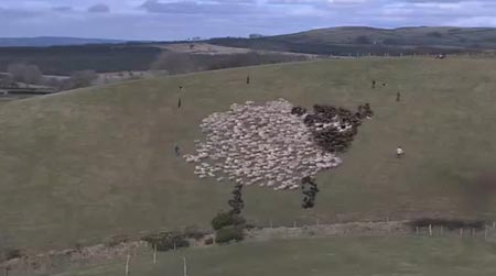 這段視頻中,牧羊人指揮牧羊犬,驅(qū)趕羊群,拼出羊、游戲、焰火甚至蒙娜麗莎圖案。