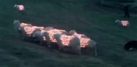 畫(huà)面上,一只牧羊犬身披發(fā)光二極管“外套”,奔上山坡,像一團(tuán)焰火躥上漆黑的夜空。突然,預(yù)先“埋伏”在山坡上的羊群四散,身上的發(fā)光二極管“外套”同時(shí)亮起,宛如煙花綻放。