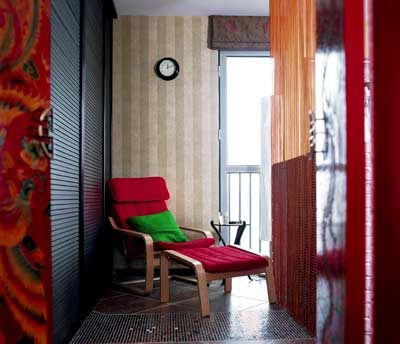 從臥室望向客廳,紅與綠的色彩象兩重美麗的畫框,鎖住了一道家的風(fēng)景。