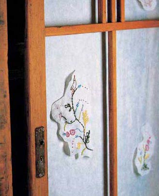 制作簾子時最好選擇稍薄的材料,準(zhǔn)備大小不同的幾塊布料,分別繡上需要的圖案。最后,用針線將布料縫綴成為簾子就可以了。如果覺得刺繡有點困難的話,可以利用已經(jīng)繡有圖案的手帕,也不失為一種好方法。