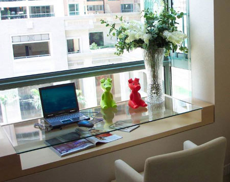 這是實(shí)用與科學(xué)相結(jié)合的方法。平方米數(shù)不多的年輕人的家居可以運(yùn)用。專家說自然光最適合人眼。想想家里哪里容易采到自然光?當(dāng)然非飄窗莫屬啦!而且把桌腿都自然“省”掉了。按照入墻家具的做法做出一個(gè)20至40厘米高的書桌臺(tái)面,飄窗書桌可向室內(nèi)延伸,又可在拐角處打造電腦桌、書架、書柜,一個(gè)大一統(tǒng)的開卷天地歸您所有。