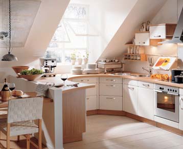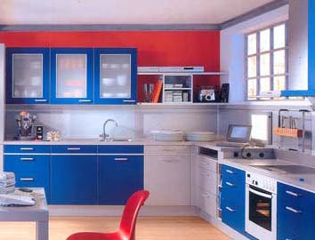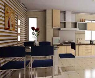 如今設(shè)計師的創(chuàng)意能將整個廚房都藏了起來:在一字形或L形櫥柜 兩側(cè)分別設(shè)計一個立式儲物柜,此柜的四面能依次拉伸,組合成一扇長長的柜門,需要時,就可 將此四扇門向中間合攏,將中間的工作臺、吊柜和地柜都掩藏起來。