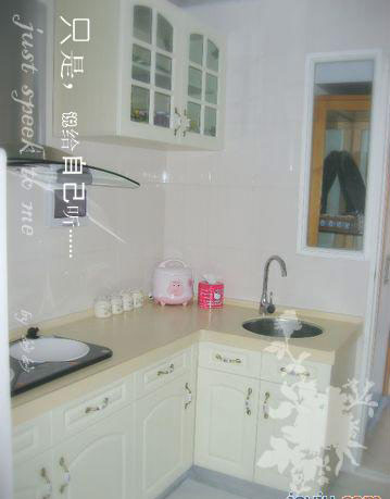 廚房,櫥柜富有田園氣息,廚房用品很可愛