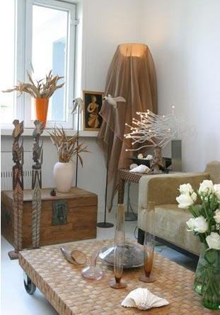 藤編的茶幾,上面的裝飾以及旁邊的裝飾如果不告訴你,你估計(jì)都不知道是什么。