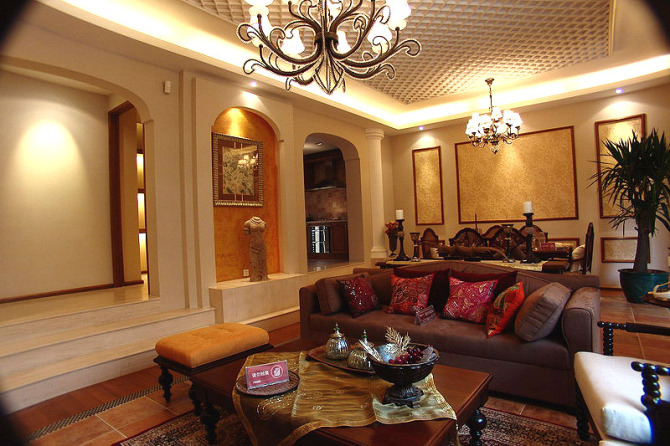 客廳挑空過(guò)高,應(yīng)意視覺(jué)感受的舒適度,采用體積大、樣式隆重的燈具可以彌補(bǔ)高處空曠的感覺(jué)。在合適的位置圈出石膏線,或者用窗簾將客廳垂直分成兩層,令空間敞闊豪華而不空曠。大戶型的衛(wèi)浴空間干濕分隔明顯,從安全考慮,應(yīng)盡量把電器插座設(shè)置在干區(qū)。