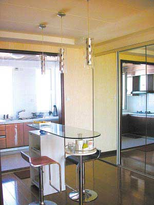 不過(guò),廚房吧臺(tái)與客廳、臥室里的吧臺(tái)有很大的不同。客廳和臥室是居室的重點(diǎn)區(qū)域,一般都裝飾得非常講究。這里的吧臺(tái)更講究和環(huán)境相適應(yīng),造型應(yīng)簡(jiǎn)潔明快,具有一定裝飾性,富于生氣,需要盡量避免呆板生硬的設(shè)計(jì)。