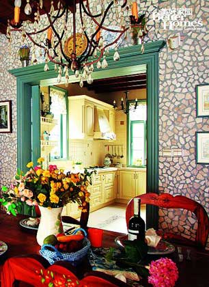 這是一套3層的別墅,田園風格使得它凸顯溫馨愜意。大部分的主人都以別墅挑空客廳的大氣為傲,王靜當時要求把客廳改造成普通高度,用砌出的樓板再造一個臥室。對于300多平方米的別墅而言,似乎并不需要如此節(jié)省空間。王靜覺得太空曠的空間并不適合她想要的田園風情,田園風格的本質(zhì)就是讓生活在其中的人感到的是親近和放松的舒適感,與其這樣,倒不如來個更環(huán)保的空間劃分。王靜選擇了適合田園風格的陶瓷和水晶相搭配的燈,不僅僅顧及了田園風格的整體性,無形間將天花板的高度大大拉低,讓陽光的穿行決不受到任何影響。