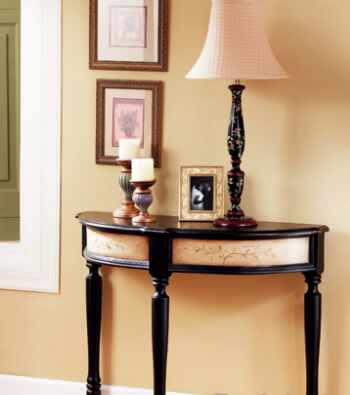 古典款式的玄關(guān)桌可以彰顯此處的典雅感覺(jué),抽屜可以收納小物品。