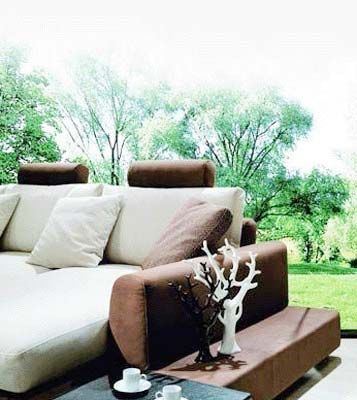 布藝沙發(fā)宜配合現(xiàn)代簡(jiǎn)約風(fēng)格的PVC材質(zhì)的小茶幾、小型玻璃茶幾或長(zhǎng)方形金屬茶幾使用。這些茶幾能調(diào)節(jié)光線的投影,使得空間呈現(xiàn)明快、溫暖、時(shí)尚的風(fēng)情。最常見的玻璃桌面搭配鐵件或木做的桌腳。由于制作技術(shù)的進(jìn)步,融合不同材質(zhì)的茶幾,在造型上有了更多的變化性,使得搭配上也具備了更多彈性