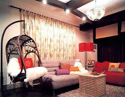 帶有復古感覺,又很接近法式或英式鄉(xiāng)村風格。色彩淡雅的仿舊地毯,綴有花草藤蔓圖案的裝飾柜,玻璃雕花屏風,斷斷續(xù)續(xù)墜落的流蘇燈飾,綴滿亮片、珠珠的靠墊以及鏤空的紗質窗簾等飾品都大行其道,將曼妙嫵媚的味道在家居空間中盡情傾瀉。
