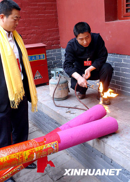3月29日,在河南省新鄭市黃帝故里景區(qū)正殿前,一位工作人員在用液化氣為香客點香。當日是農(nóng)歷三月初三,相傳是中華民族人文始祖黃帝出生的日子,人們紛紛到黃帝故里進香祈福。