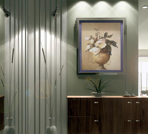 玄關(guān)若不以墻來作間格,用低柜來代替也行,其上選擇玻璃或通透的木架來裝飾。低柜可用作鞋柜或雜物柜,上面則可鑲磨砂玻璃,這樣既美觀實用,同時也符合下實上虛之道。必須注意的是,玻璃不同鏡子,會反射的鏡子通常不可面向大門,因為會將家中財氣反射出去,但磨砂玻璃則無此顧慮。