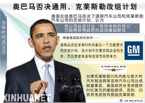 圖表:奧巴馬否決通用、克萊斯勒改組計劃 新華社發(fā)
