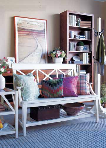 4、靠包適宜選取溫暖明亮的顏色,如果是同一色系,那么就在形狀大小與圖案上有所區(qū)分,避免過度繁復(fù)。