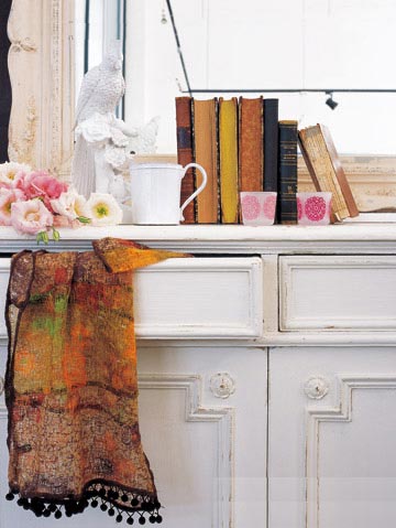 純潔的白色和淡雅的綠色,看似古舊的家具,正在勾勒居室此處的語調(diào)。但是,原本看似普通的居室一角,因為木椅復古的邊緣圖案,花盆精致的雕刻,以及屏風周邊精巧的設(shè)計,開始變得與眾不同。在那些質(zhì)樸的表達方式中,細節(jié)可以改變風景。