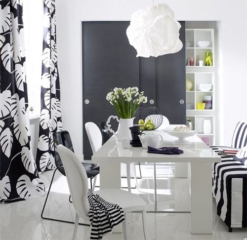 白色的簡(jiǎn)單純凈怎樣演譯出經(jīng)曲風(fēng)范?別擔(dān)心,MIX點(diǎn)黑色如何?黑白色的經(jīng)曲搭配是時(shí)尚辦永不過時(shí)的話題。要注意的是:黑色一定要局部適量應(yīng)用,才不會(huì)搶了白色餐桌的風(fēng)頭。