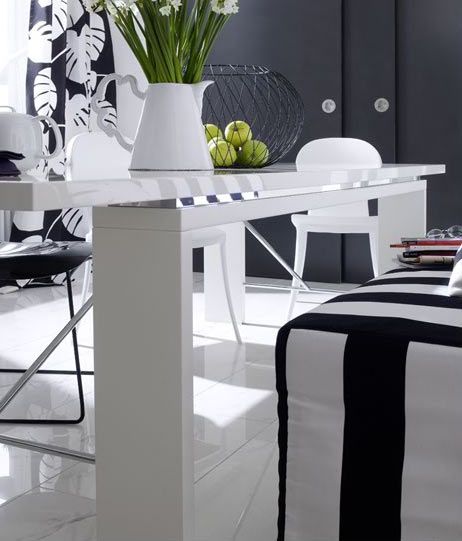 亮白色的餐桌,黑白條紋的座椅,營(yíng)造出簡(jiǎn)約不簡(jiǎn)單的視覺效果,是不是有種高貴的現(xiàn)代感?