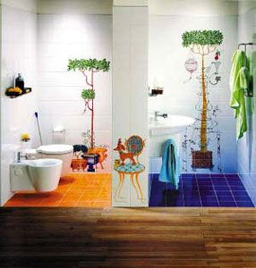 面盆處做彩色主題墻