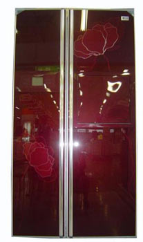 LG GR-2274NRG冰箱,豪華紅色雙開(kāi)門(mén),牡丹花紋,尊貴典雅。而鑲嵌于門(mén)板和門(mén)把手的630余顆施華洛世奇水晶,則閃耀著無(wú)比的奢華與浪漫,同樣將婚房的喜氣烘托到頂點(diǎn)。