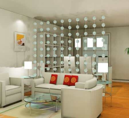 最簡單的做法,是用一個珠簾或者紗簾裝在沙發(fā)后面,這樣既能做到隔斷,又不會對通風和采光造成影響。這種方法既簡單而且便宜,又極富時尚感。